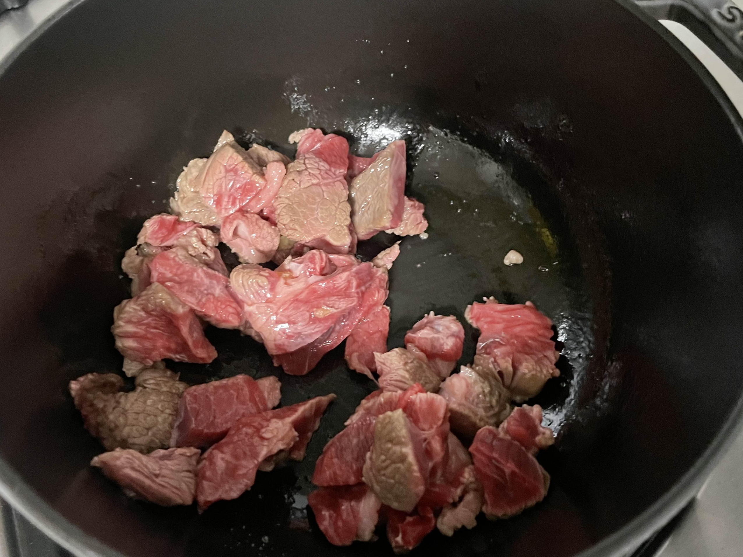 소고기와 마늘을 넣고 볶는다