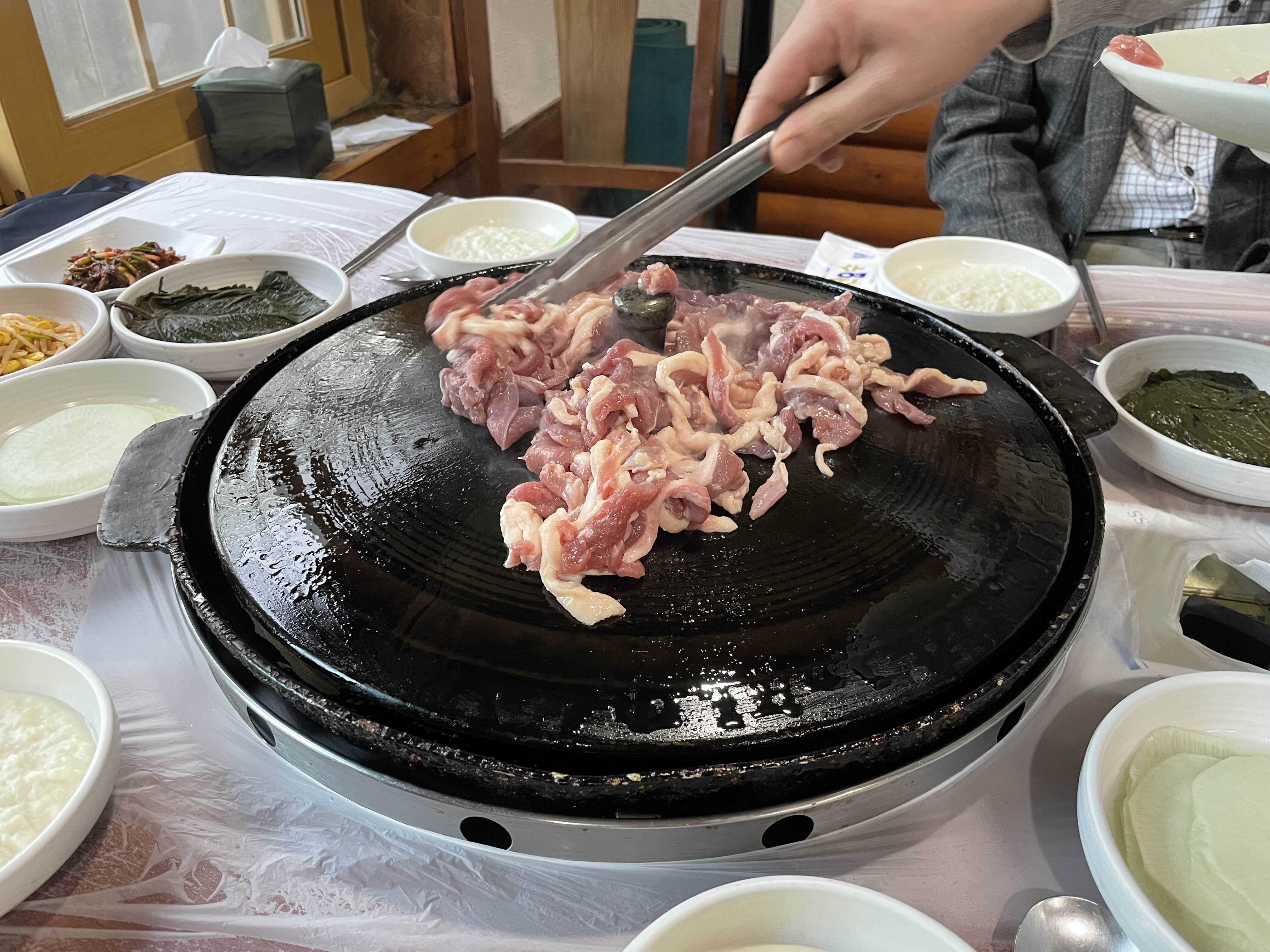 그 위에 단무지 올려두고 고기랑 싸서 먹으면 진짜 쫀맛이다.