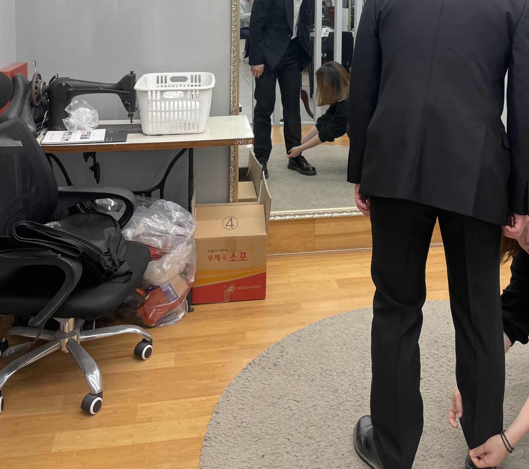 거기서 예복스타일 1벌, 체크무늬 1벌 골라 입어보고 가봉사이즈에 맞춰 셀렉!