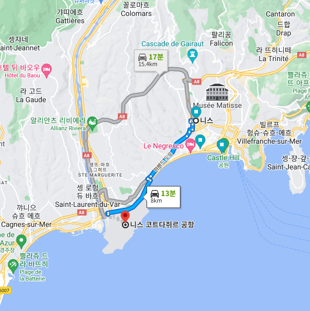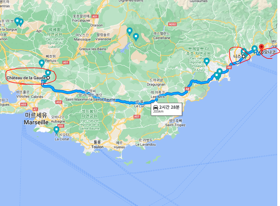 남프랑스 첫날의 여정은 아래와 같다.