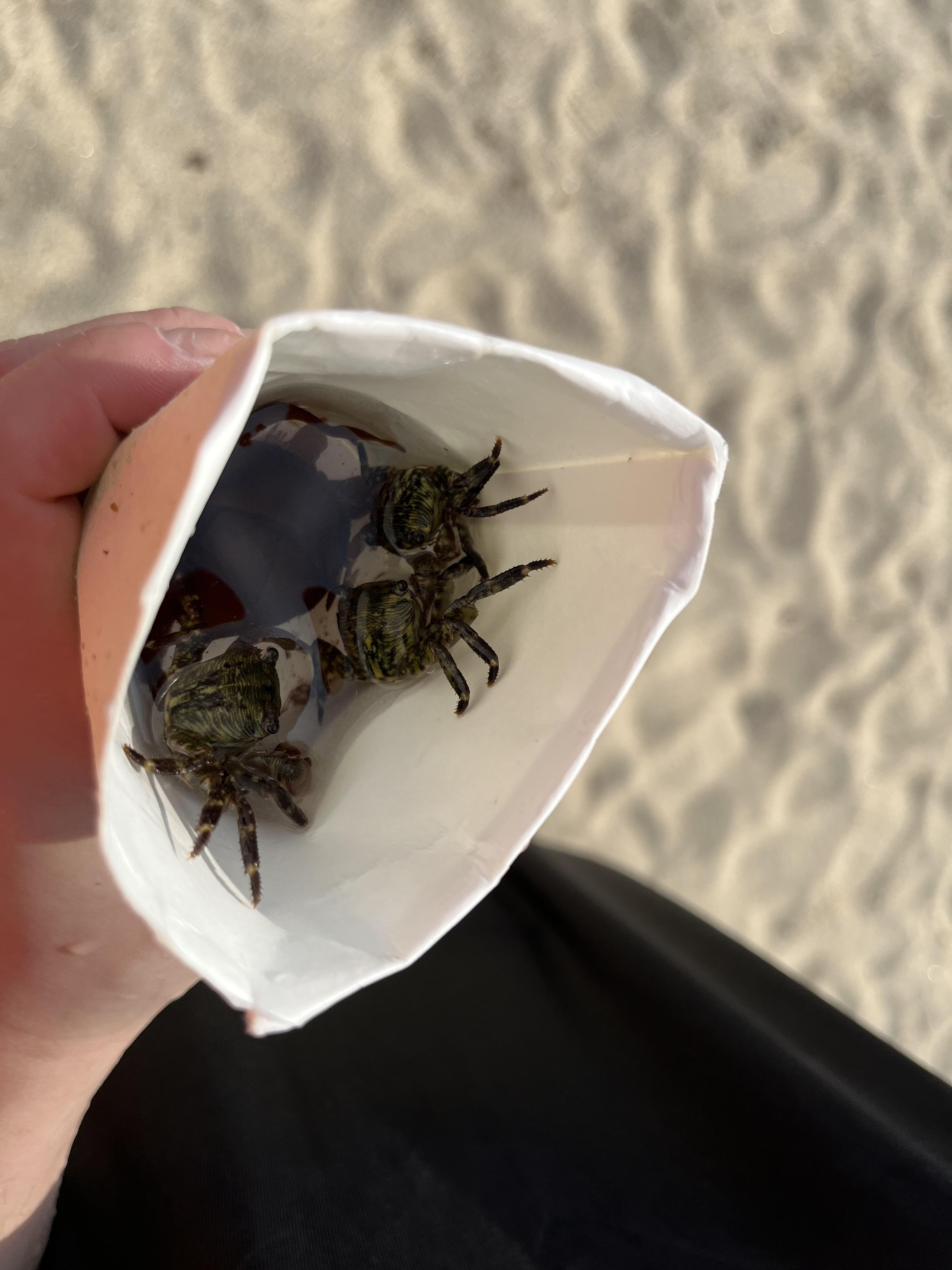 오빠랑 종이컵 공수해와서 젓가락 누가 버린거 하나 챙겨서 돌 사이사이에 게들 잡음