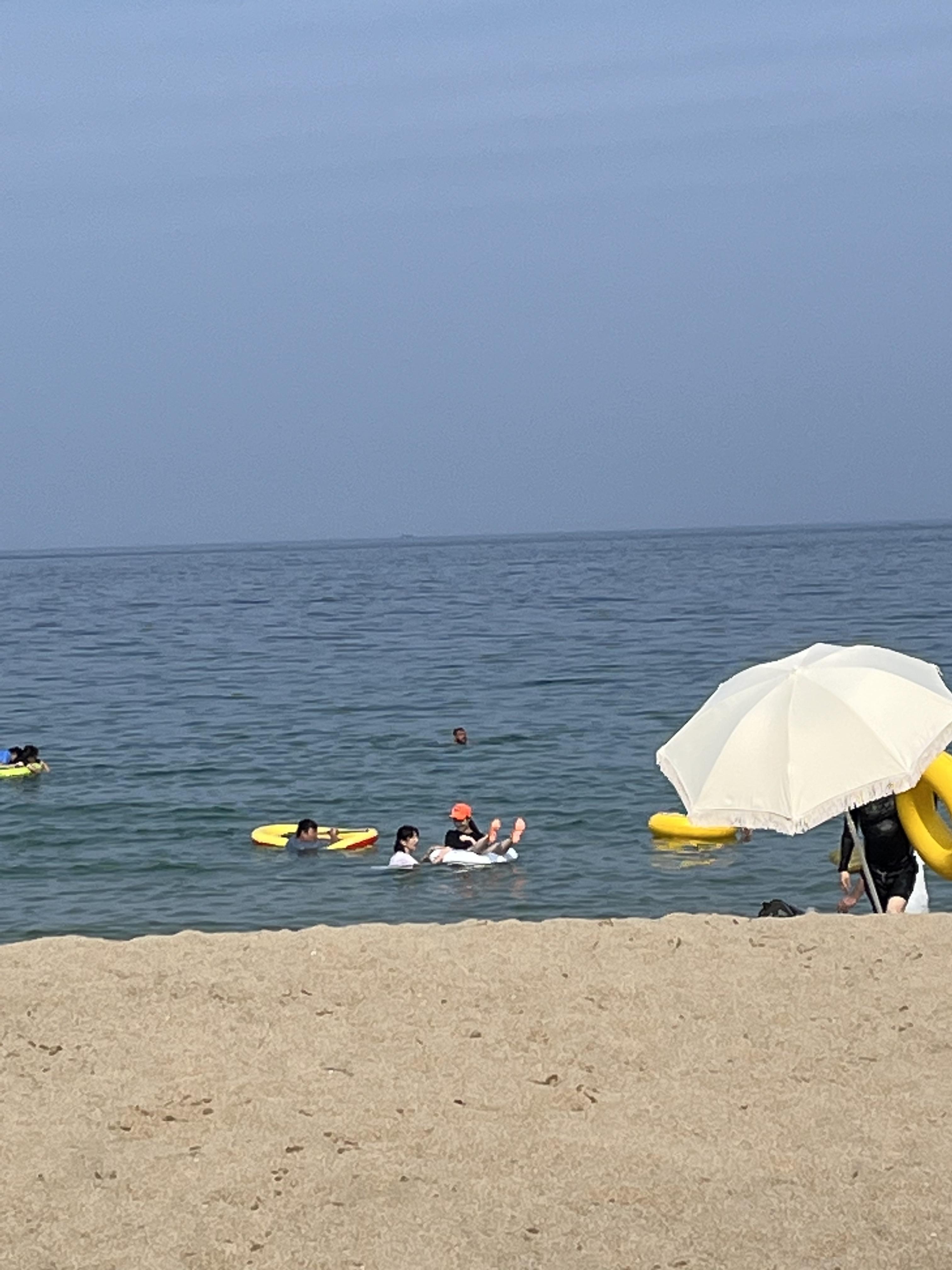 언니랑 바다에 슬슬슬 슬금슬금 들어가는데 물이 진짜 시원해가지고 와..