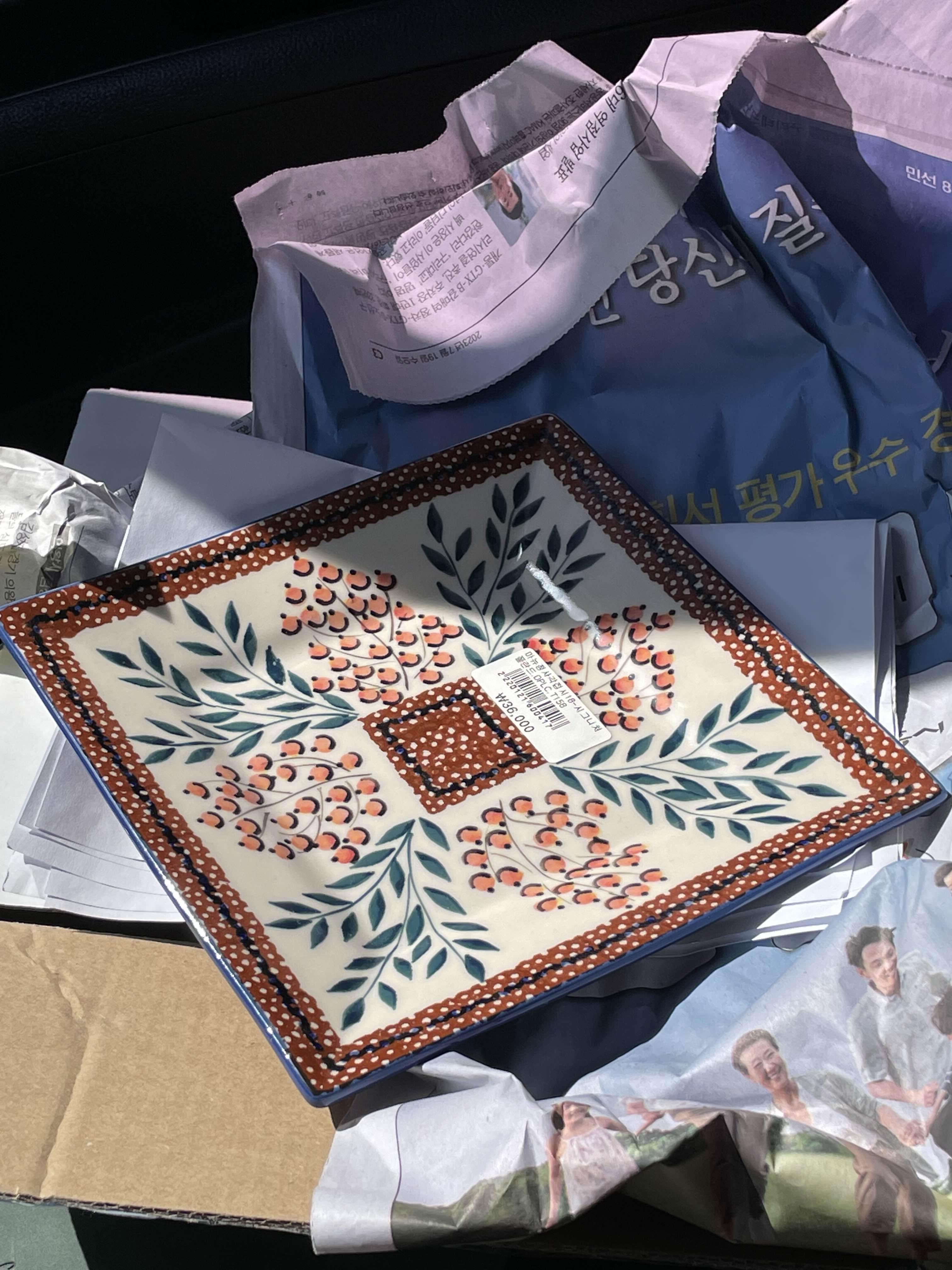 집으로 오자마자 새로 산 사각 마누팍투라 접시 게시하기 💚