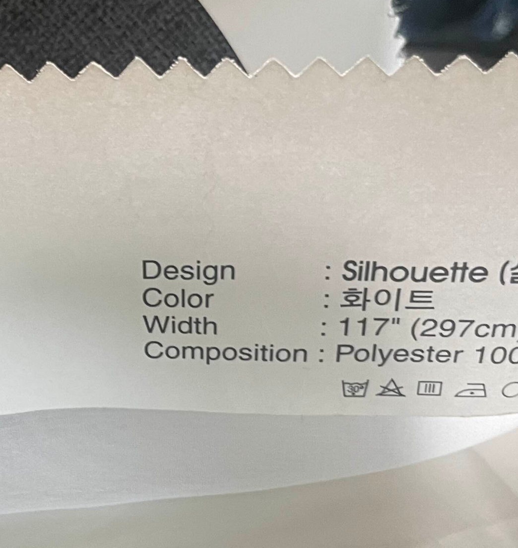 불투명하고 두께가 있어서 사생활 보호도 되는 듯 해 보였다. 그래서 홑커튼 하나만으로 거실 시공 할 경우 요 원단을 많이 쓴다한다.