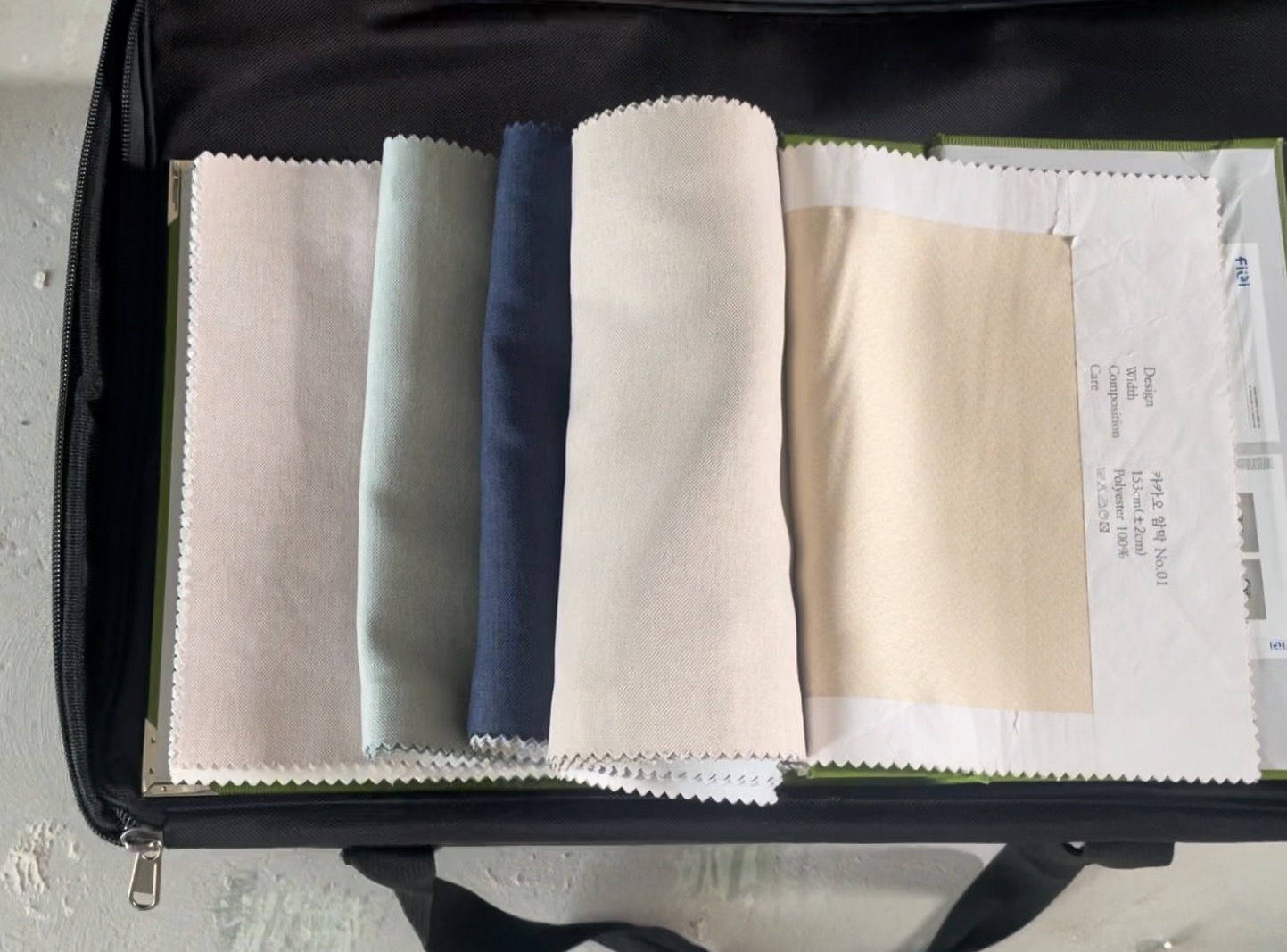 사장님께서 추천해주신 색상과 우리가 골라본 색상의 원단들!