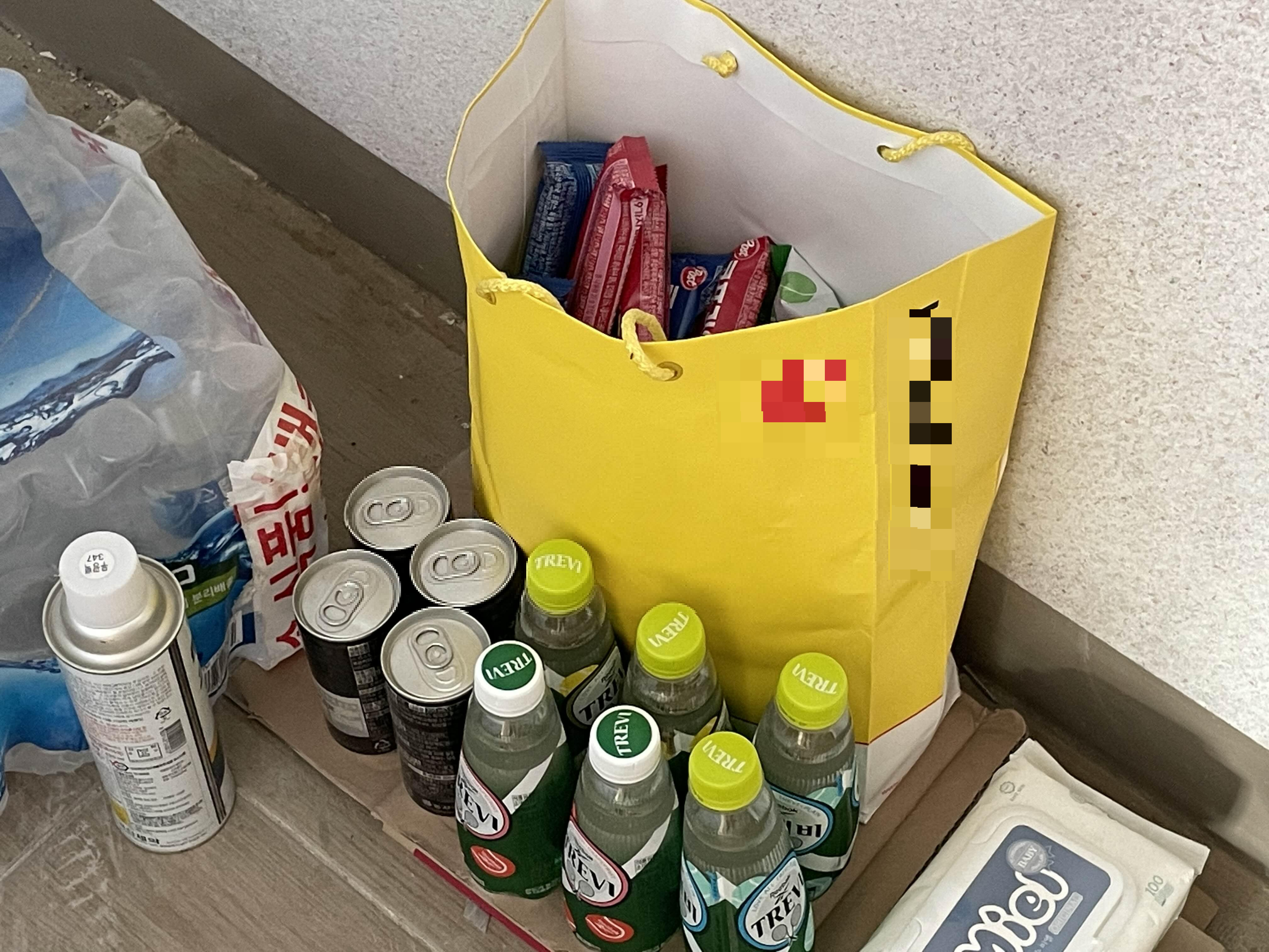 베란다 공간에 간단한 간식거리와 음료를 조금 챙겨두고 나왔다.