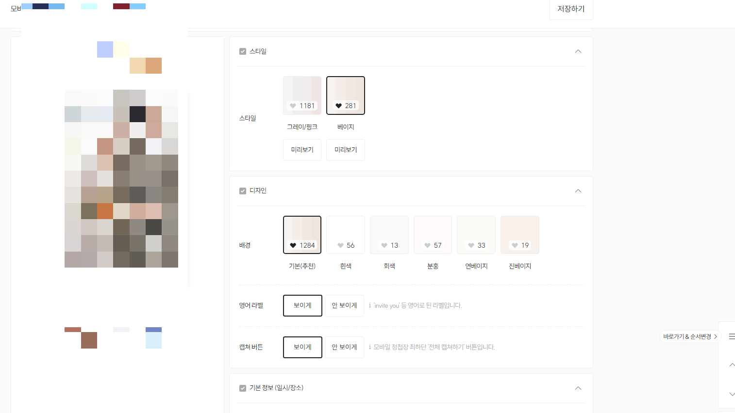 메이크디어는 청첩장 만드는 편집 화면도 굉장히 깔끔하고 잘 되어있어서 어렵지 않았다.