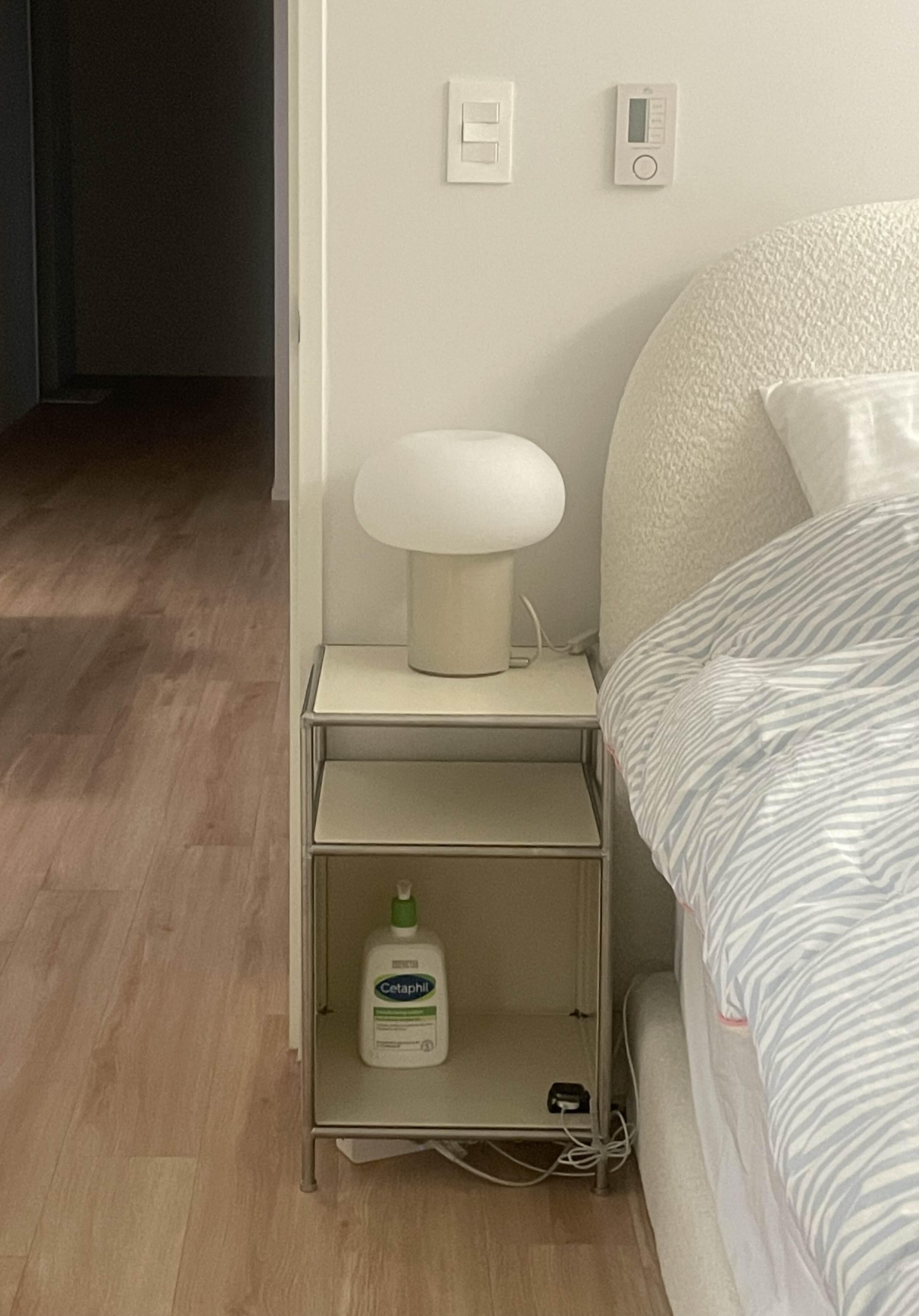 거의 대부분의 협탁 사이즈가 최소 35센치부터인 관계로 침대를 옆으로 좀 더 밀어서 35센치를 확보했다.