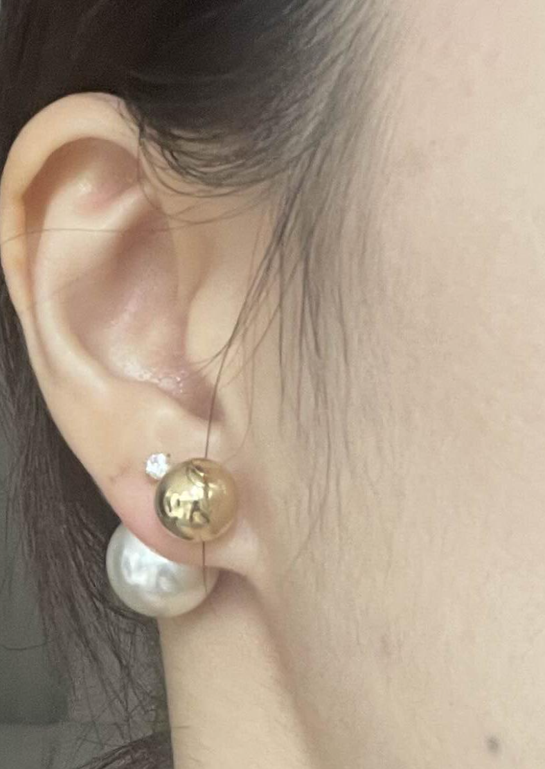 큰 사이즈의 진주 클러치가 포인트로 특별한 날 착용하기 좋은제품. 앞 뒤를 바꿔 착용도 가능해 활용도 또한 높은 귀걸이. ㆍ소재 브라스, 은침, 핵진주 ㆍ도금 골드 : 옐로우골드 도금 실버 :