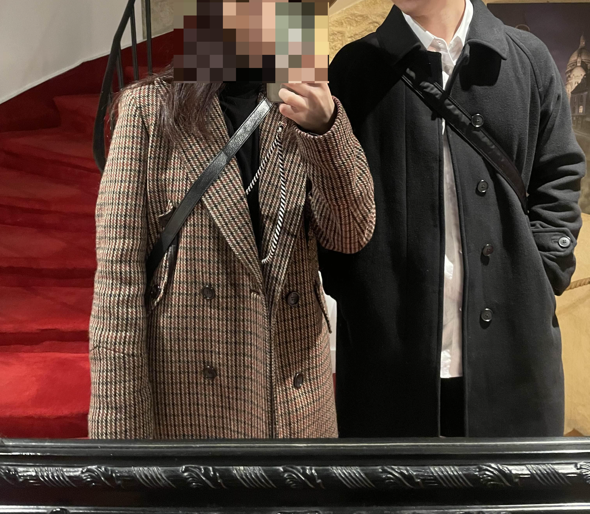 계단타고 내려오다가 거울이 있으면 뭐다 찍는다