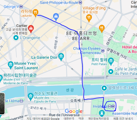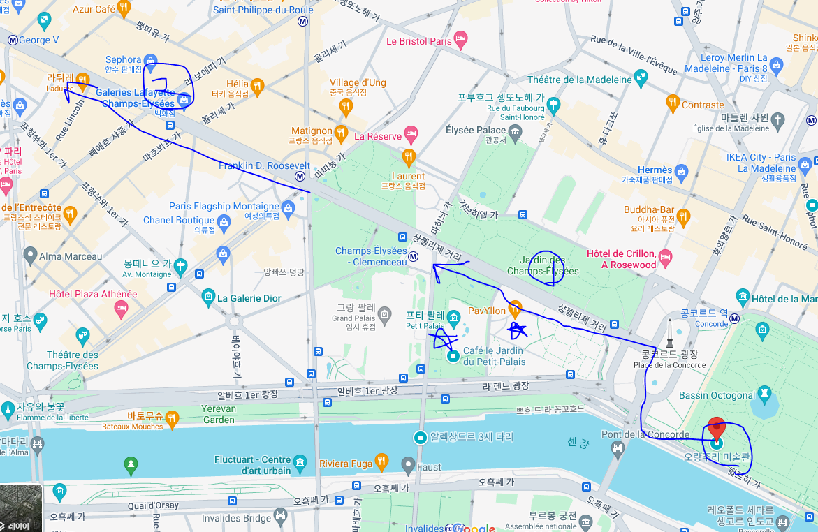 아무튼 우리가 걸은 1번길은 샹젤리제거리 가는 길(?) 이었고..