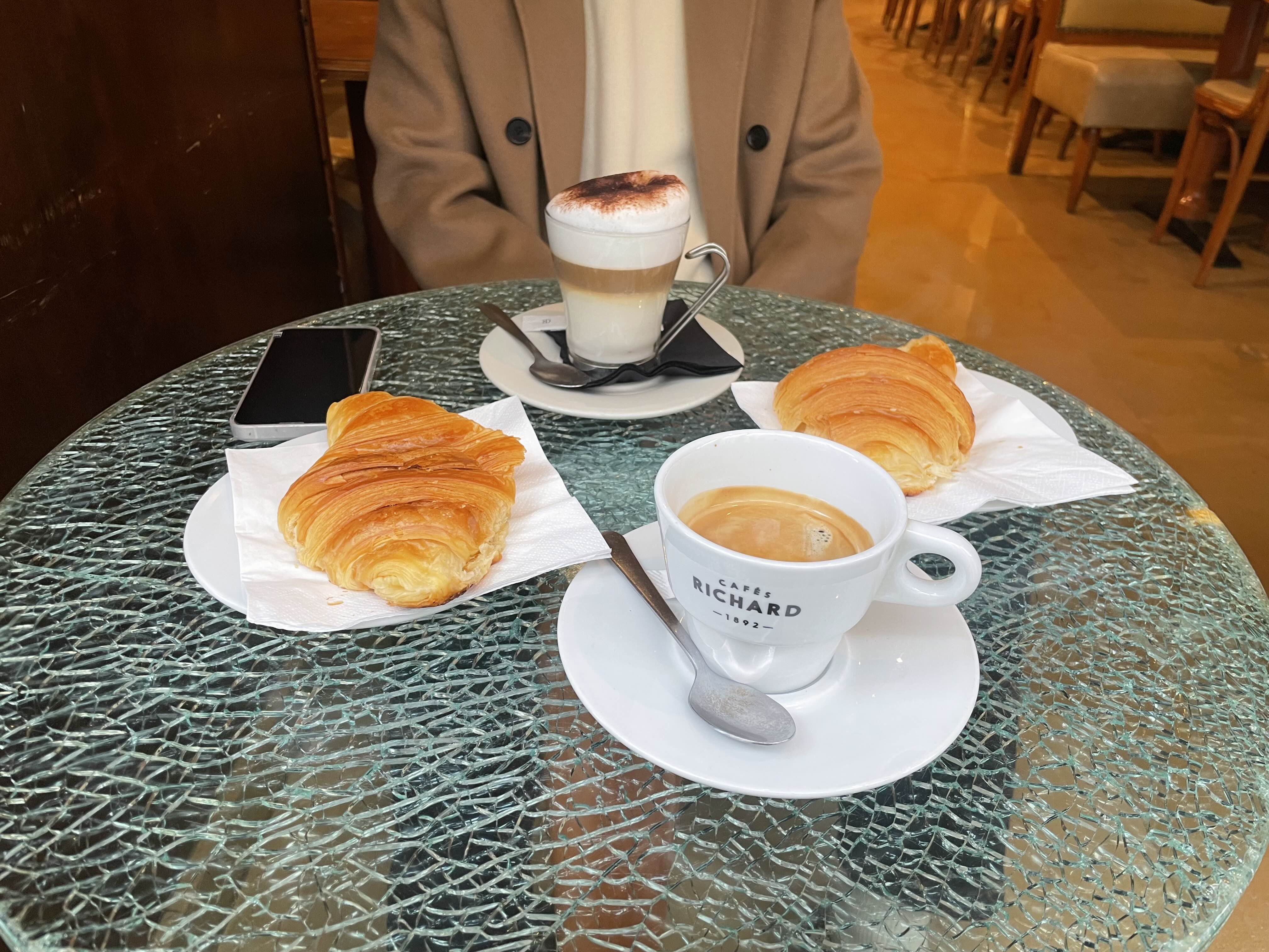 알롱제 한잔과 크롸상 하나씩 했다.