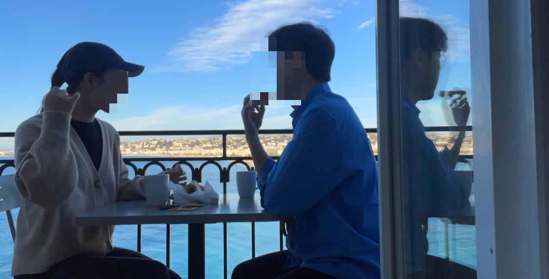 오빠랑 여기 멀리 니스에 와서 이런 풍경을 보는게 믿기지 않아!