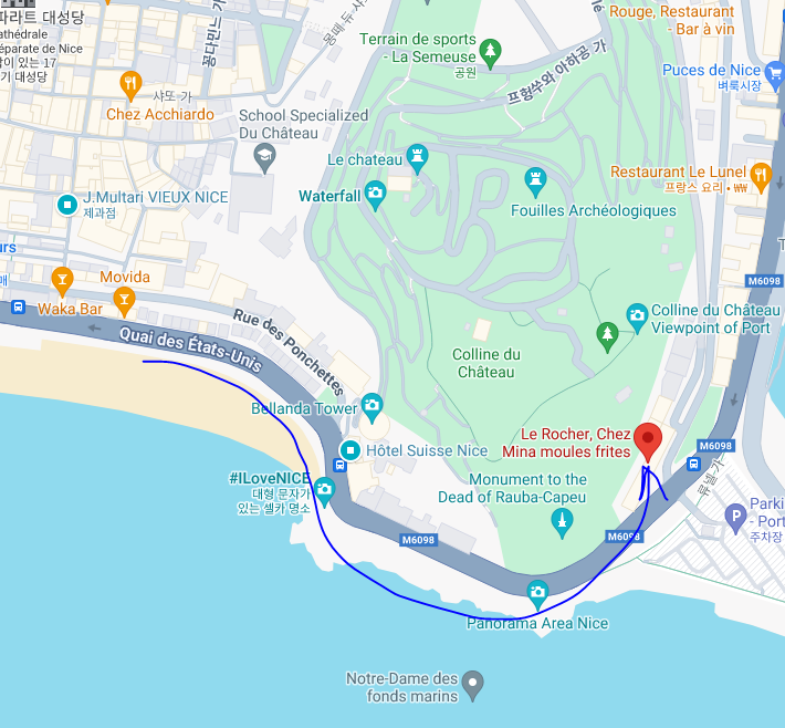 계단을 오르고 보니, 니스 해변과 마을이 전부다 내려다 보였는데