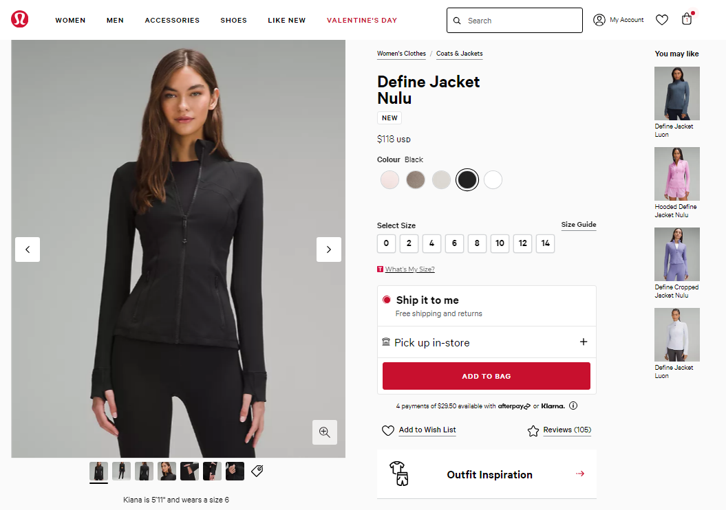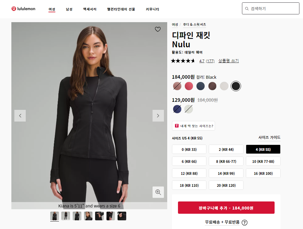이렇게 룰루레몬 자켓류도 사이즈 확인했꼬..