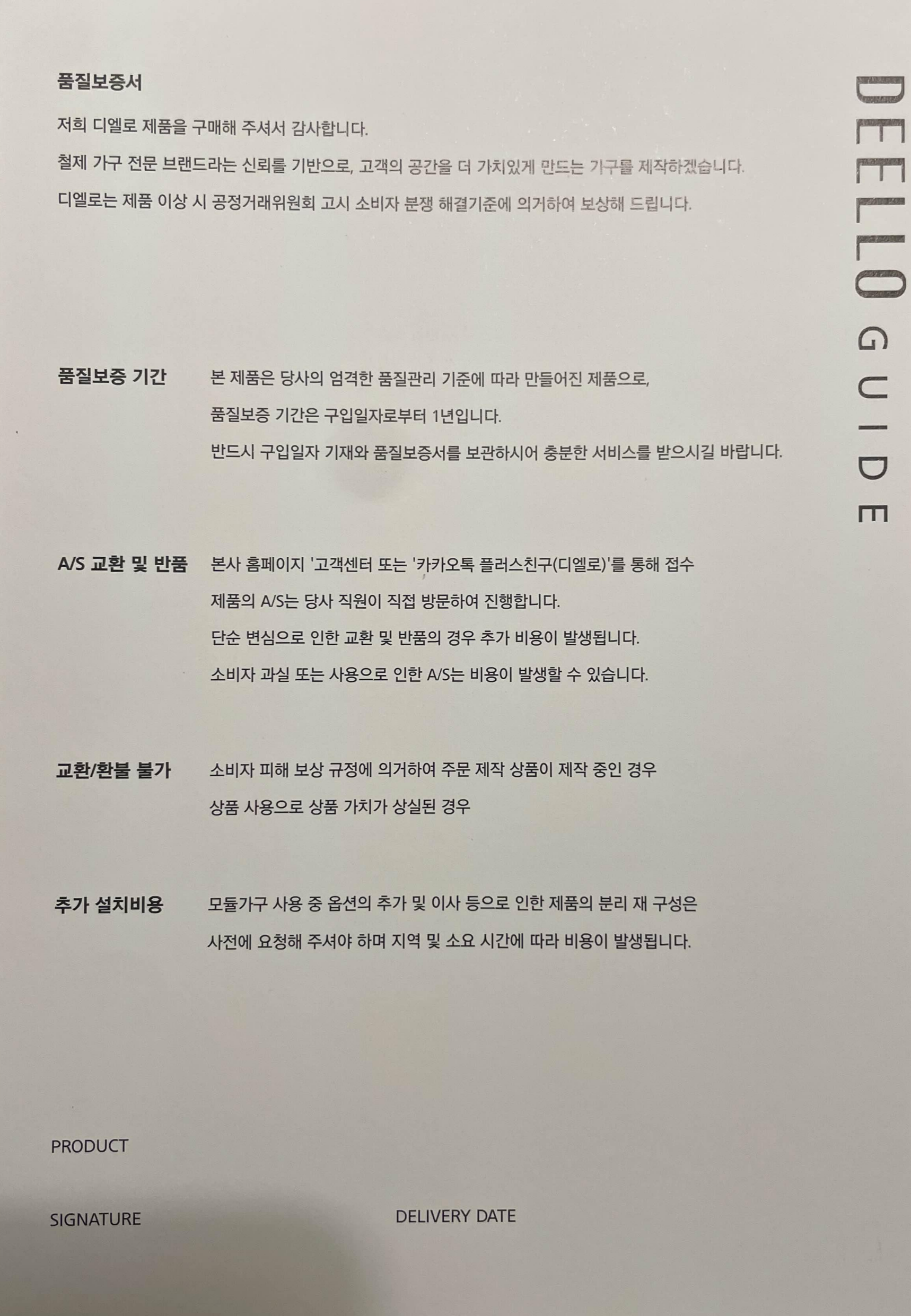 요렇게 설명서와, 품질보증서도 함께 주셨다.