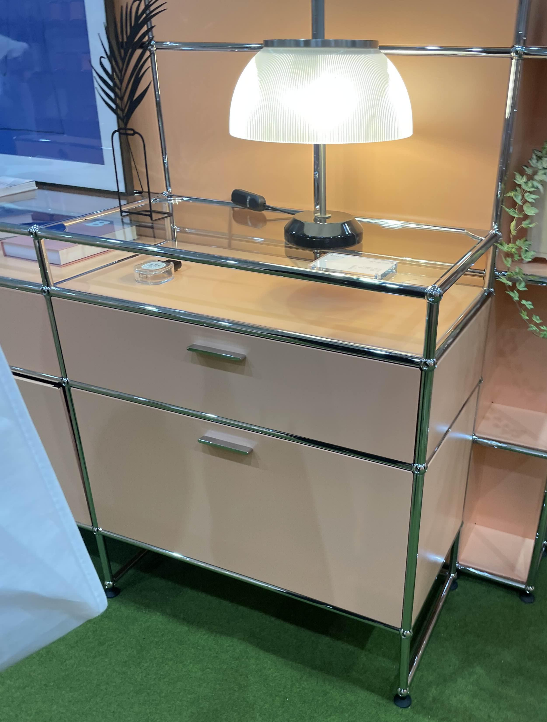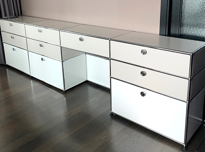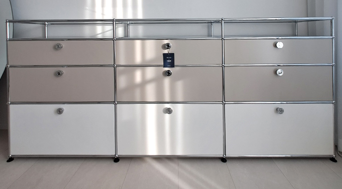 우리는 넓은 수납1단 + 낮은 수납 1단 + 유리 혹은 판넬 선반 1단 주합으로 해봤다.
