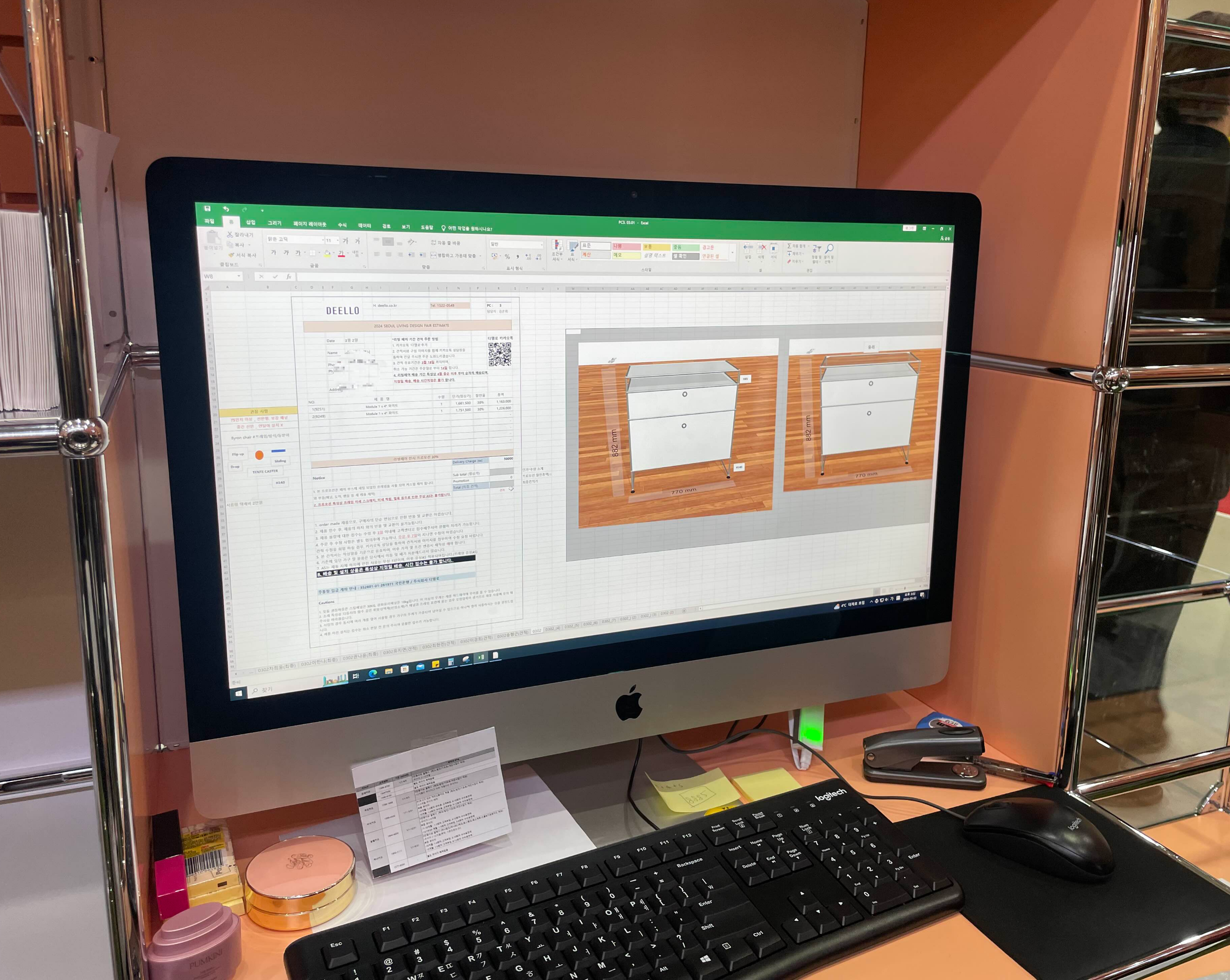 자리에서 휘리릭 해주신 다음에 금액 산출해서, 할인가 적용해서 견적서를 주신다.