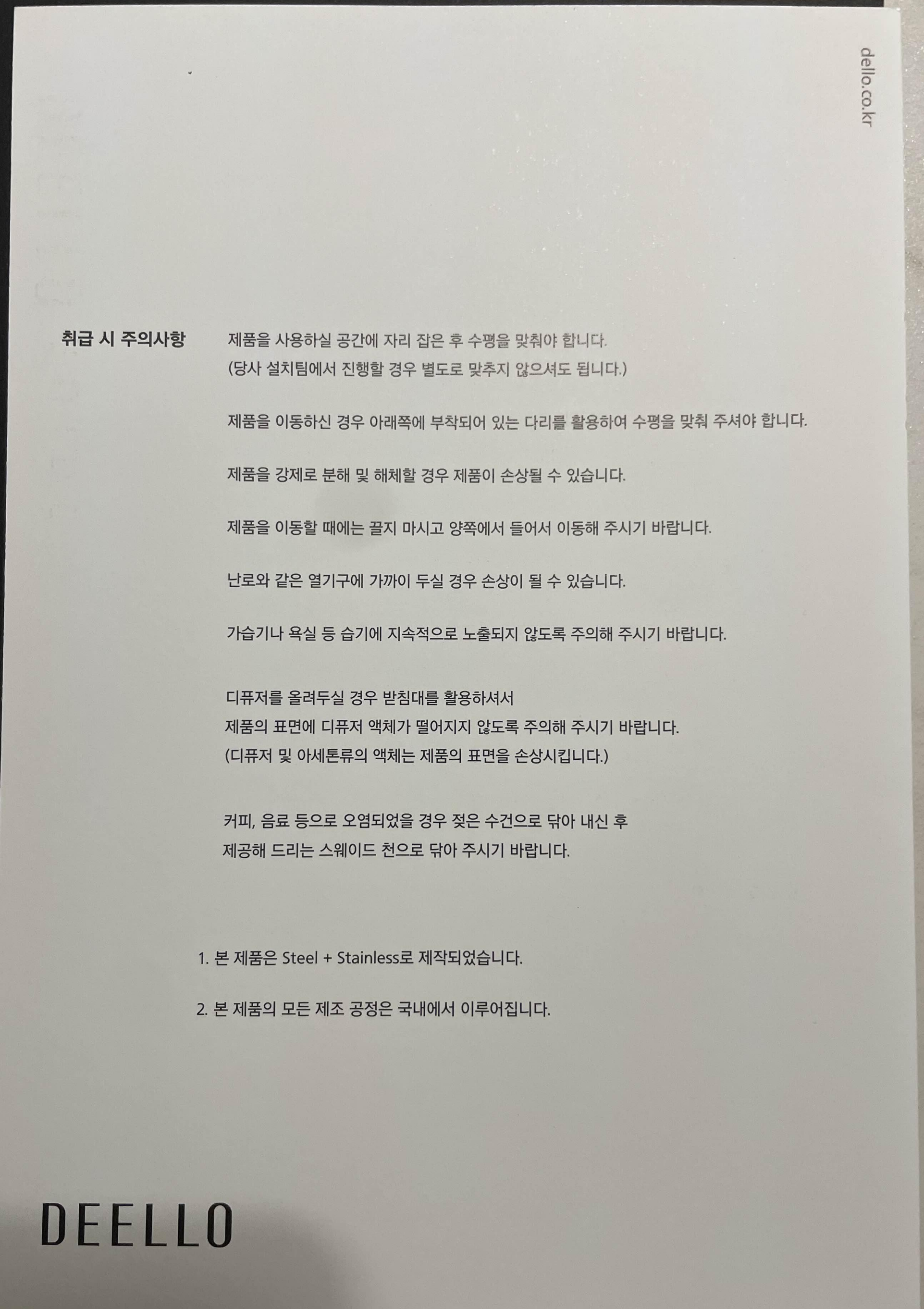 서랍장은 알콜성분의 액채는 묻지 않게 조심하라하셨다. 변색가능성이 있다며..