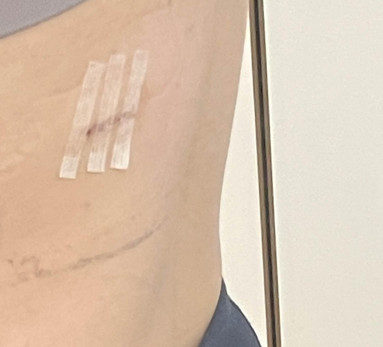 다음날 샤워를 하되 병원에서 붙여준 붕대와 반창고 제거하고 3M 봉합테이프만 한 상태로 샤워하라고 하셨다.