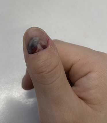 당일 저녁에는 그냥 손톱 찧은 곳 아랫 부분 살에 피가 맺혔다.
