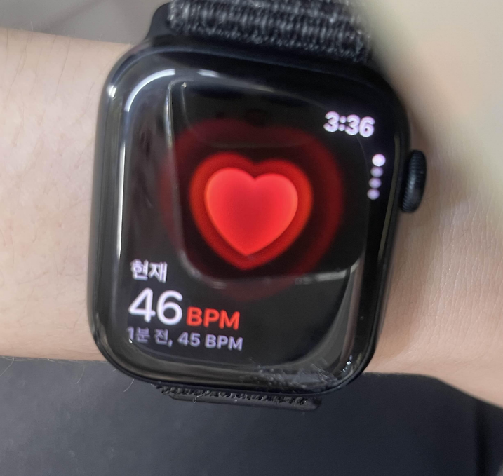 너무 괴로워서 와치 심박 확인해보니 급 44까지 내려갔다.