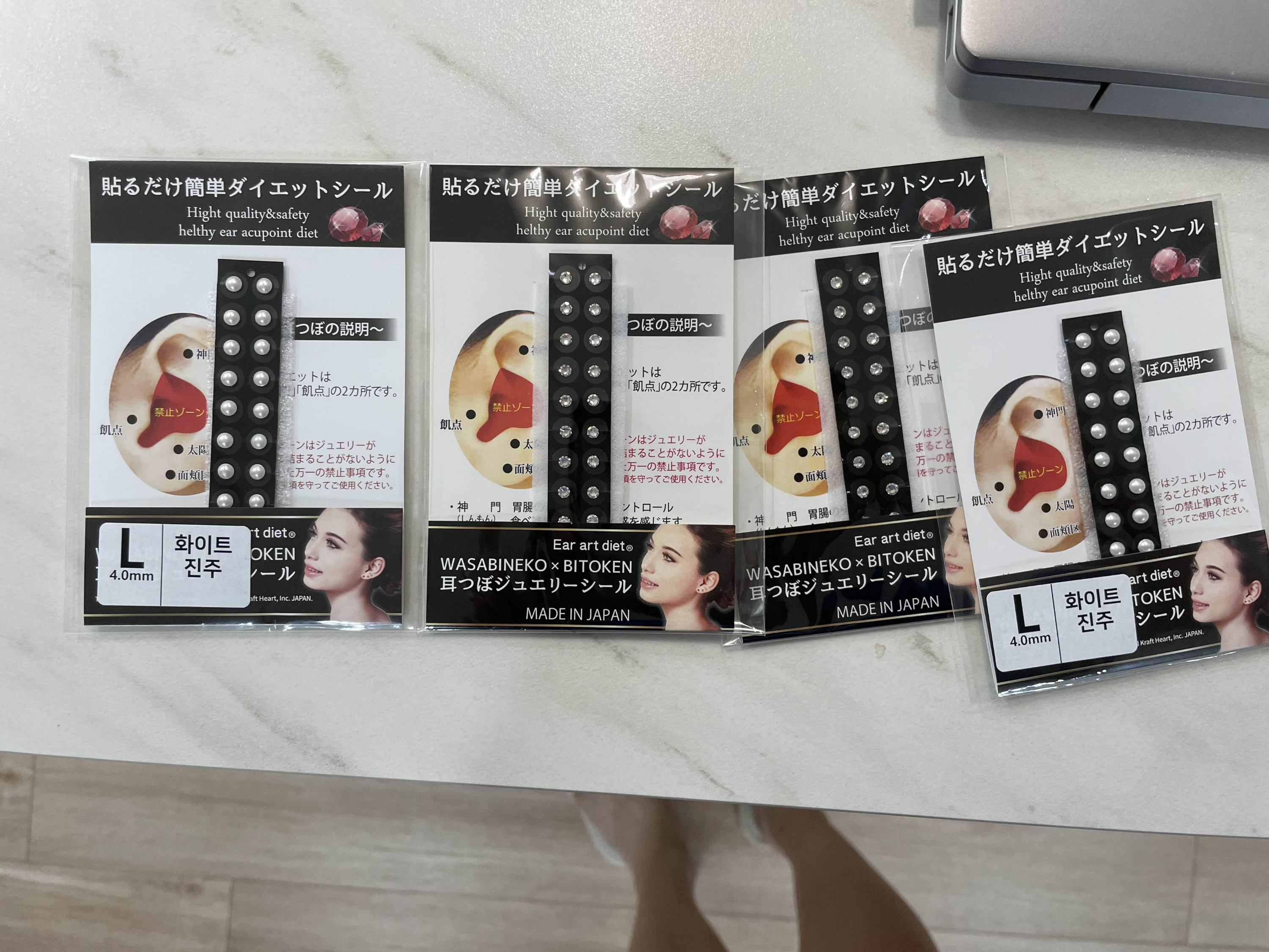 와사비네코 미미츠보 쥬얼리 귀지압패치 크리스탈 귀침 스톤 붙이는 귀걸이 스티커 M : 와사비네