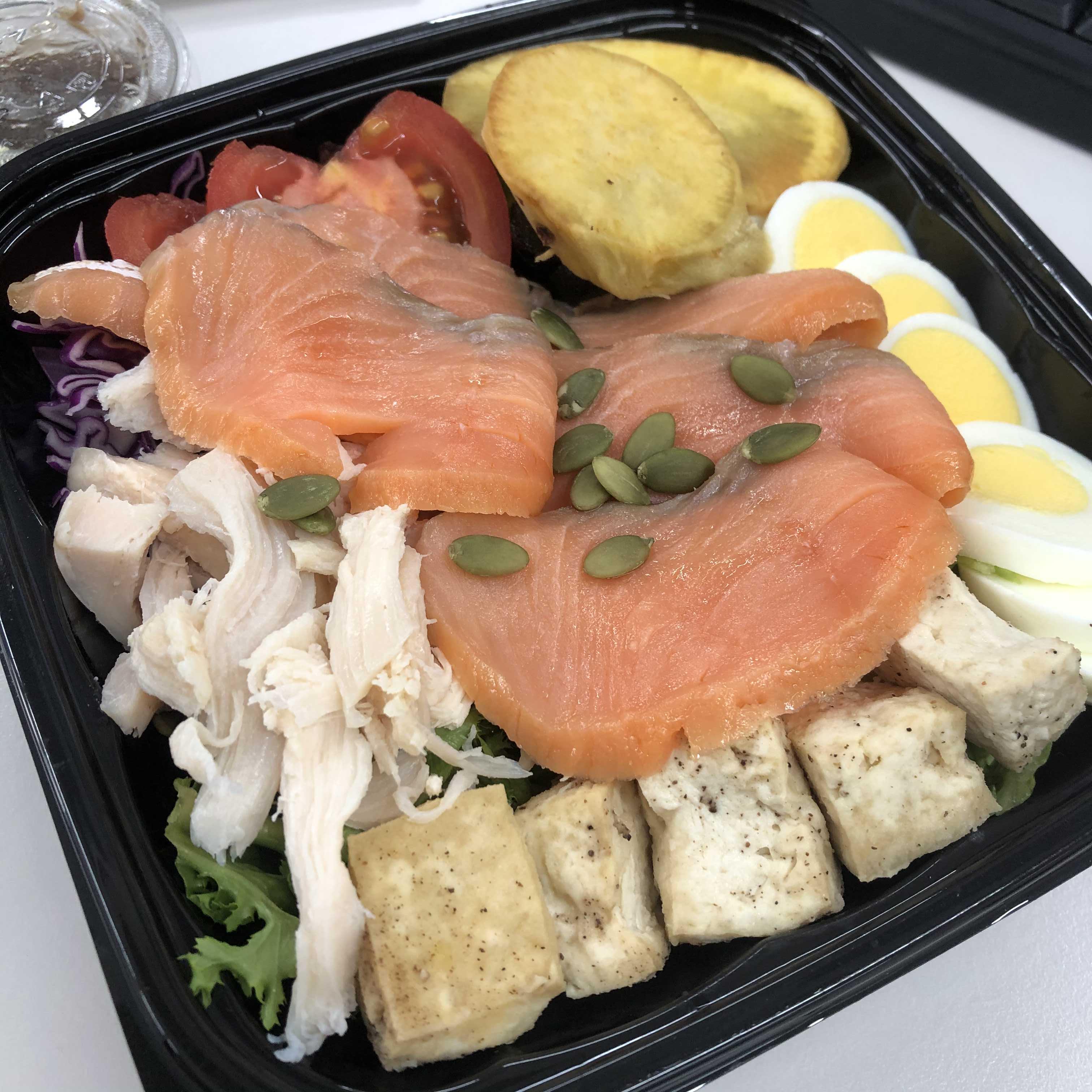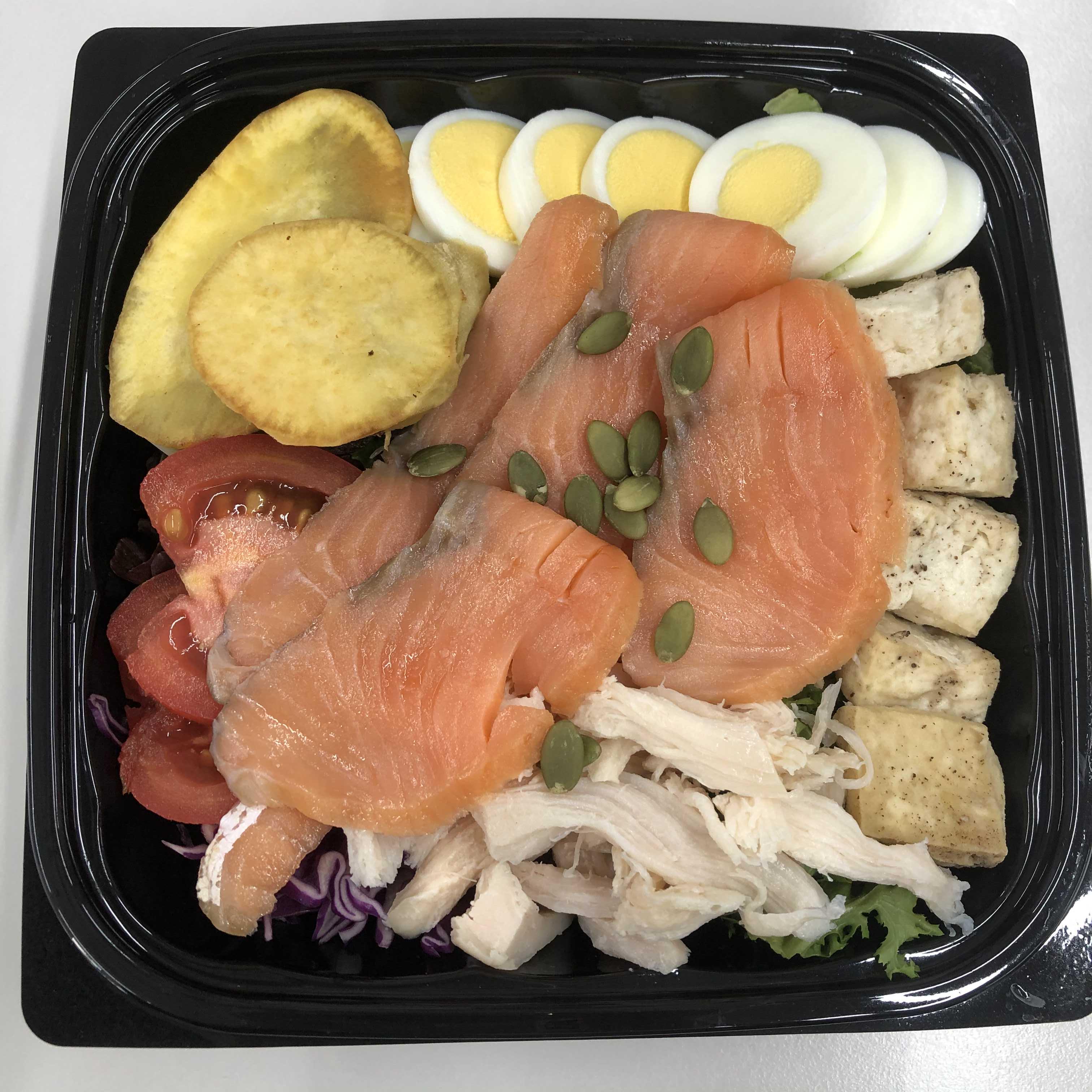 훈제연어샐러드 7,500원 +닭가슴살 추가 2,000원