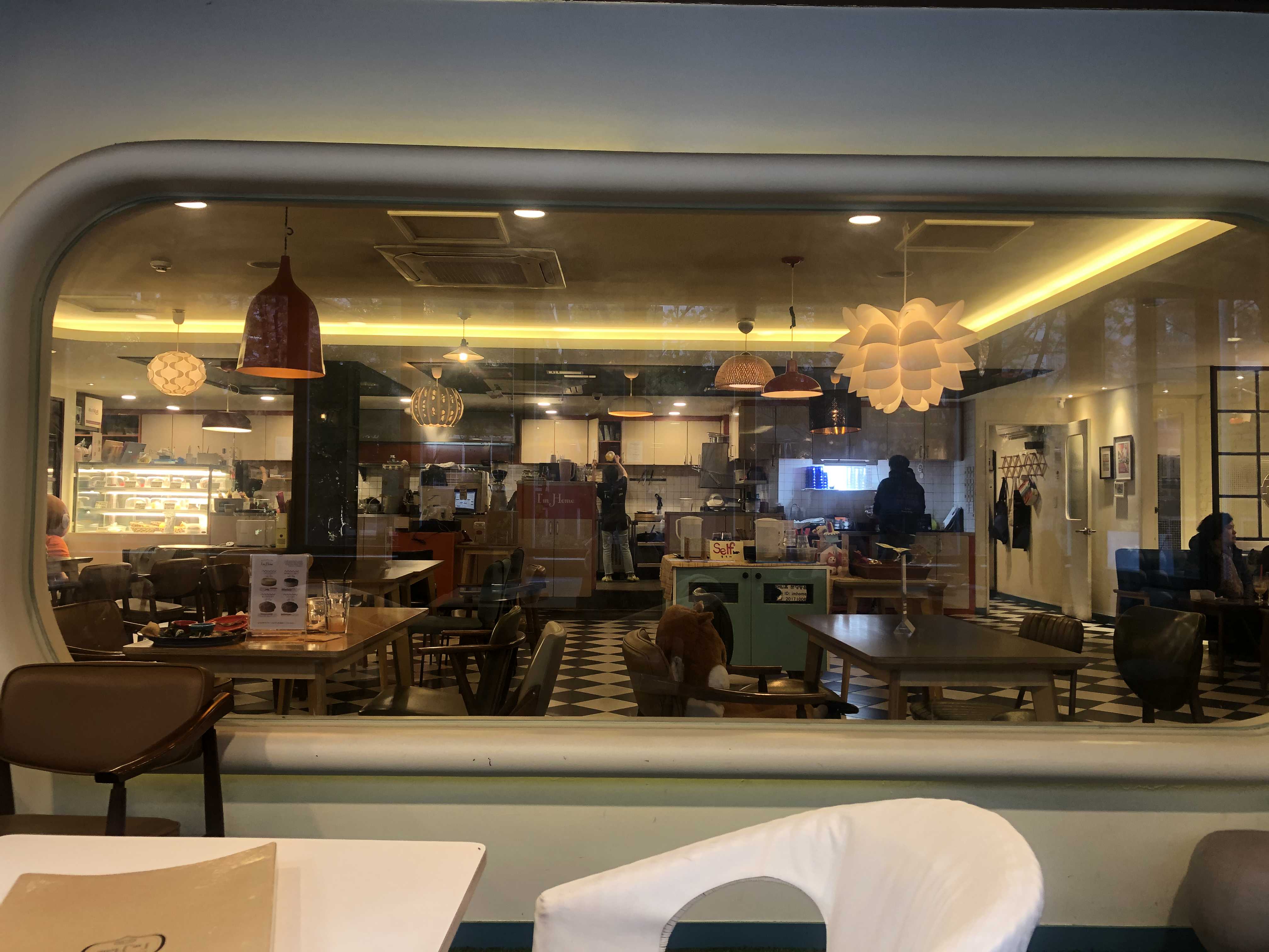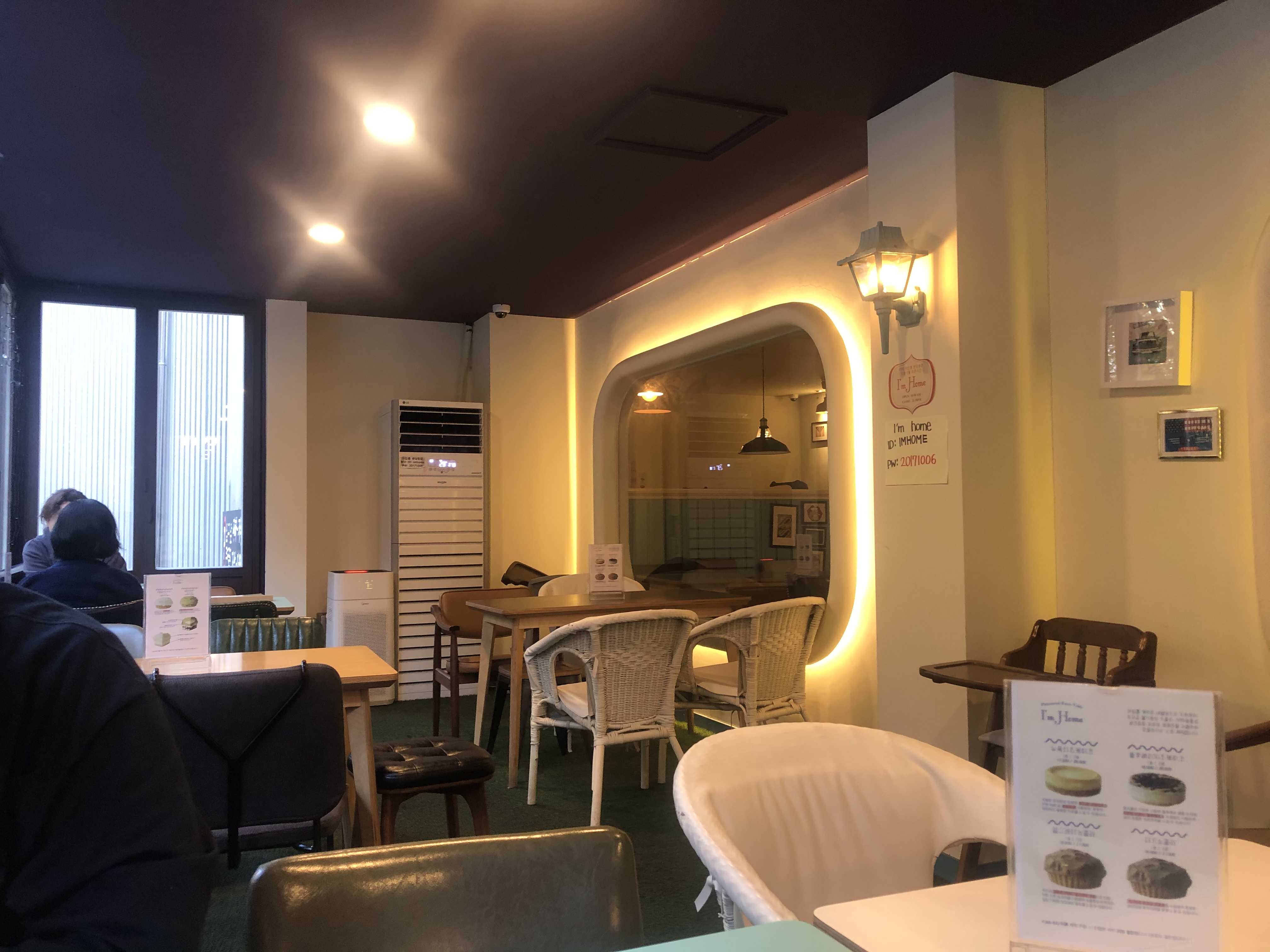 저는 아임홈 분당점의 테라스를 좋아해요! 너-무 추운날만 아니면 테라스쪽에 앉아서 매장 내부 쪽 보는 걸 좋아한답니다. 뭔가 저 아임홈 특유의 동그란 창문 디자인 넘어로 아기자기하고 코지한 내부를 바랄보는게 좋아요! 날이 추워도 안쪽에 난로를 따로 켜주셔서 담요랑 해서 덮고있으면 많이 춥지도 않아요.