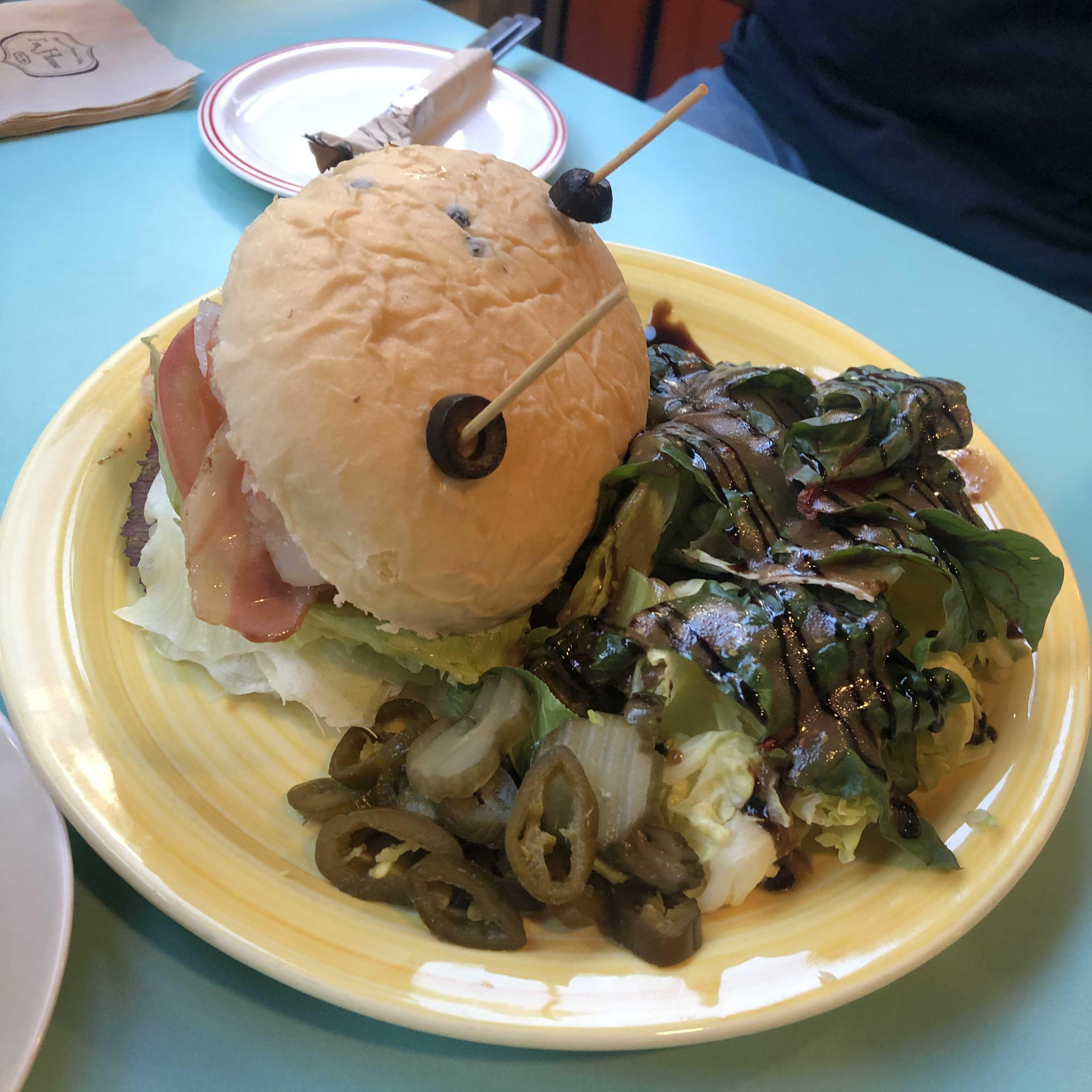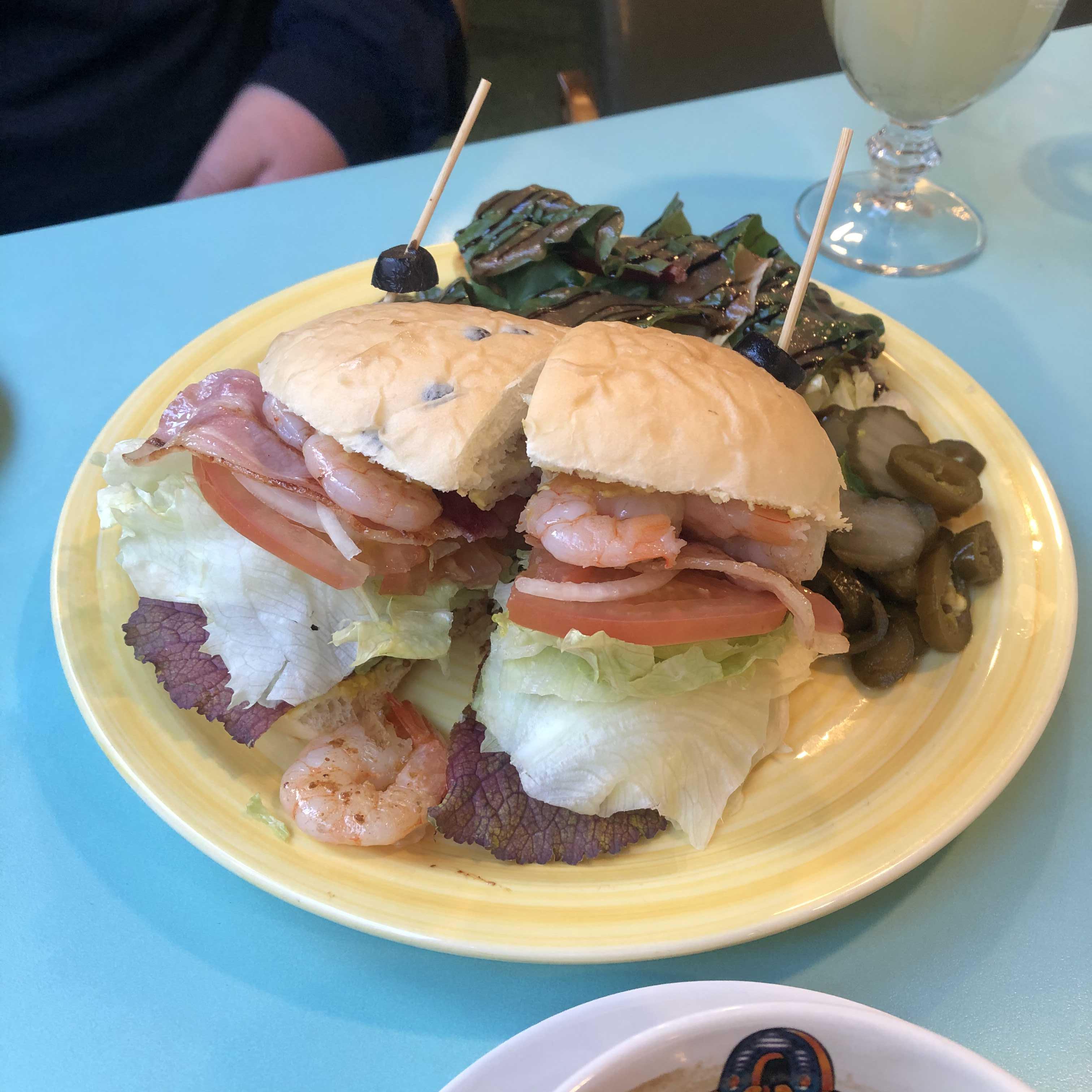 아니근데 이거 너무 귀엽잖아요. 꼬챙이에다가 귀엽게 올리브를 걸어주셨어요. 아 그치 못참찌. 걸고싶지 막 🤣🤣🤣 왠지 꼬챙이에 올리브 걸고싶은 그런 마음을 이해할 것 같아서 너무 재밌어요 푸핫. 마치 하마처럼 입을 벌리고있는 개구리같아서 귀여워요! 샌드위치는 안에 새우도 듬뿍 들어가있어서, 실하고 간도 약간 짭쪼름해서 더더욱 맛있었어요!
