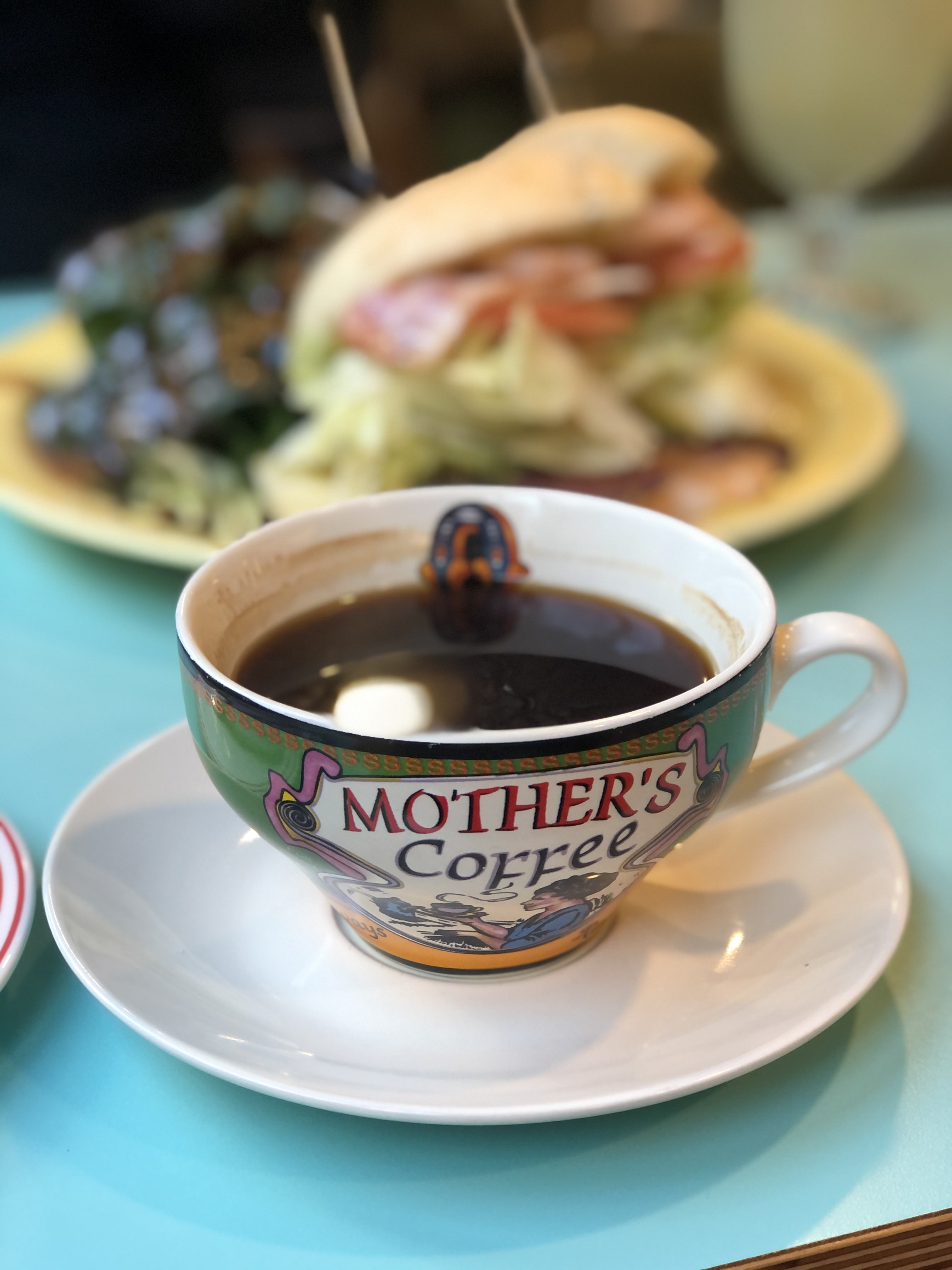 제가 주문한 커피. 사실 샌드위치 주문하면 세트로 딸려오는 커피지만, 여튼 제가 주문한 커피죠! 🤣 찻잔의 그림이 너무너무 귀여워요! 뭔가 코지한 느낌이 듭니다.