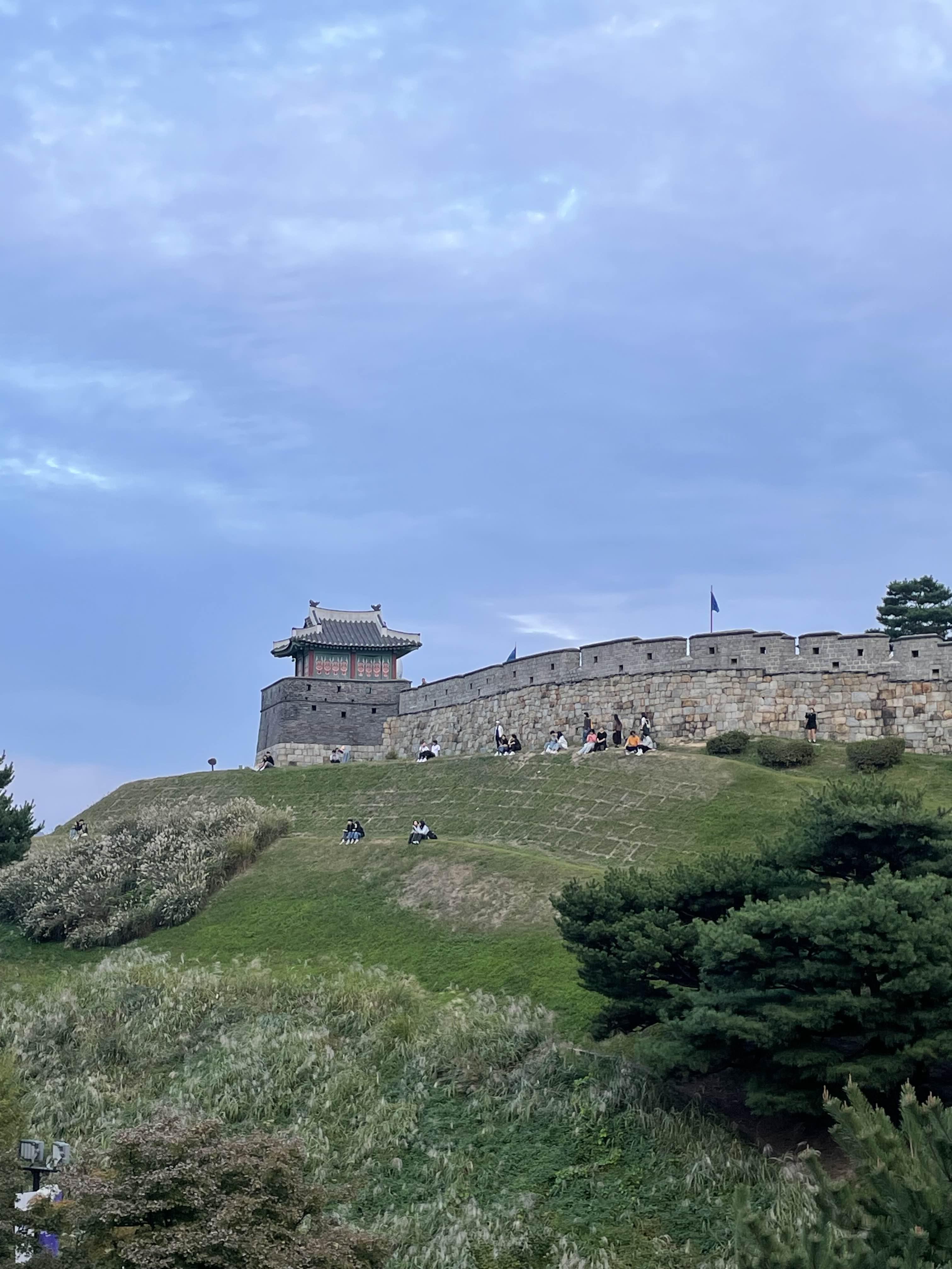 성곽을 따라서 걷는 시민들이