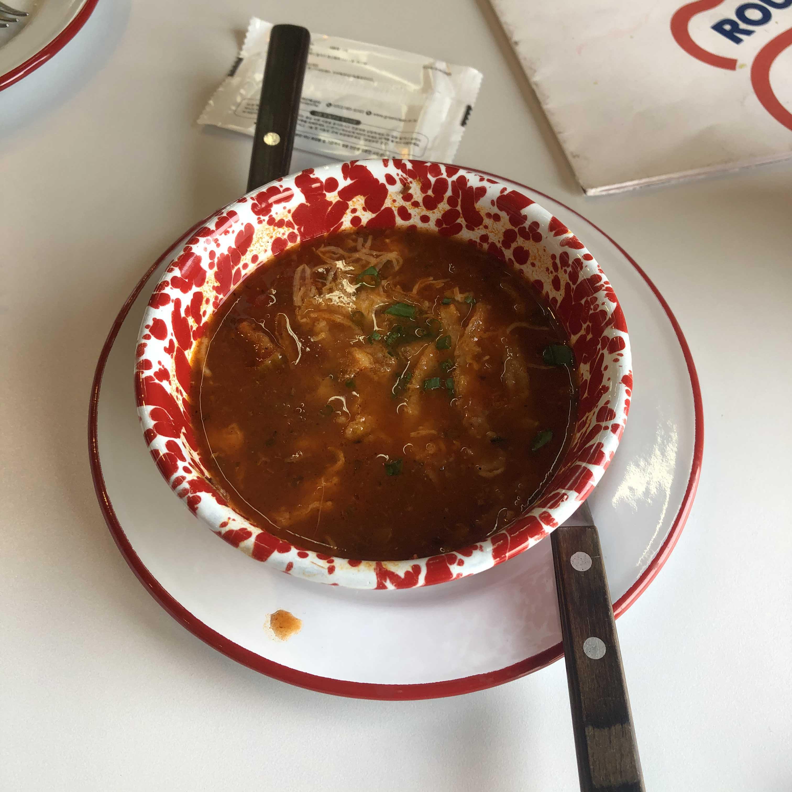 브리스킷을 소스에 찍어먹기도 하고, 빵에 덮어 먹기도 하고, 소세지 한입 맥주 한입, 피클 한입 코울슬로 한 입 이리저리 요리조리 먹는 재미가 있는 루트 플레이트. 열심히 먹고 있으니, 춥다고 주문한 토마토 스프가 나왔습니다! 🥣